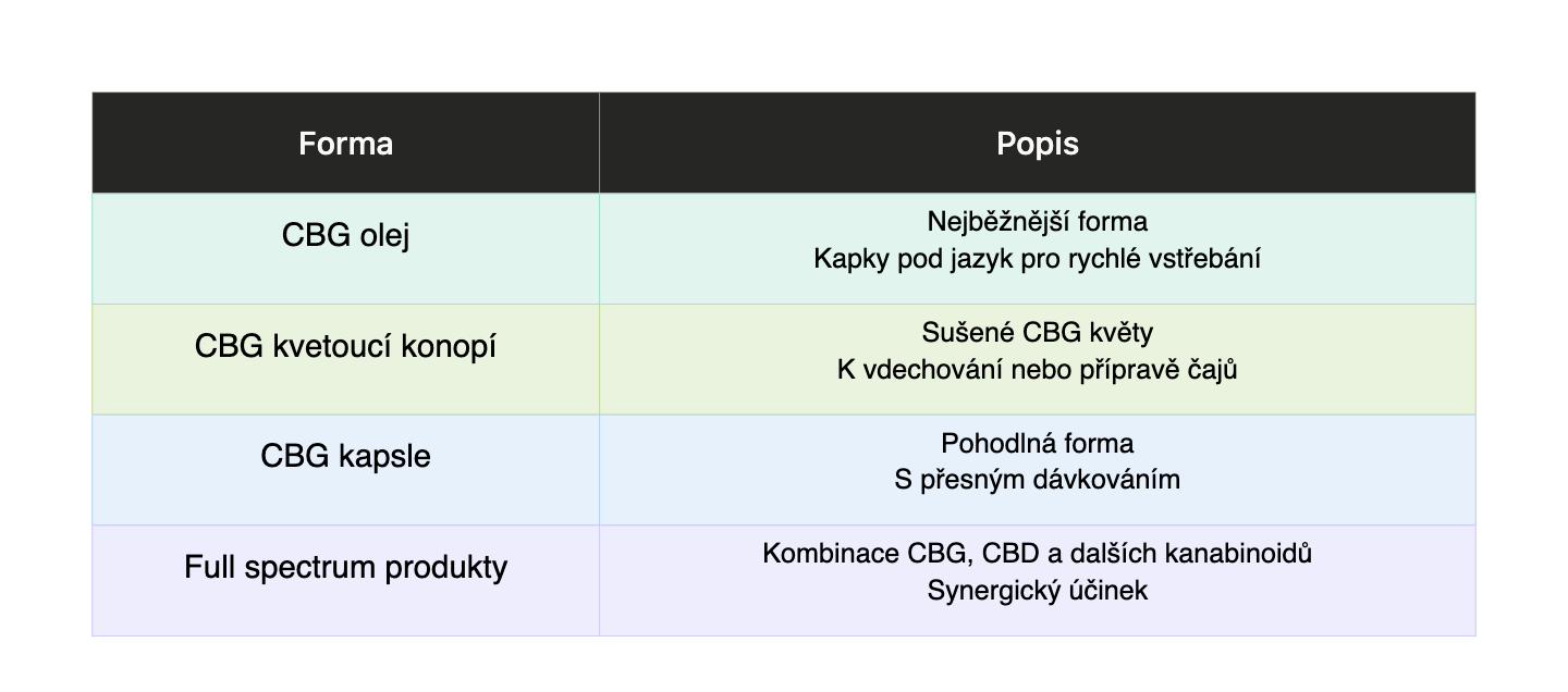 🇨🇿CBG se aktuálně prodává v několika formátech. Na českém trhu narazíš zejména na: