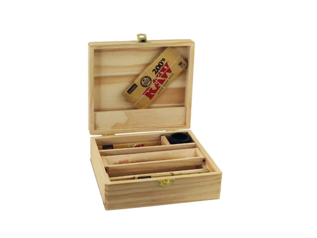 Buddies wooden box je klasická krabička vyrobena z přírodního dřeva s kovovou sponou, která udržuje víko bezpečně zavřené.